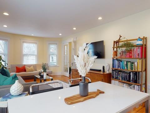 | Living Room | Flooring - Hardwood, Window(s) - Bay/Bow/Box, Deck - Exterior, Open Floorplan, Recessed Lighting |