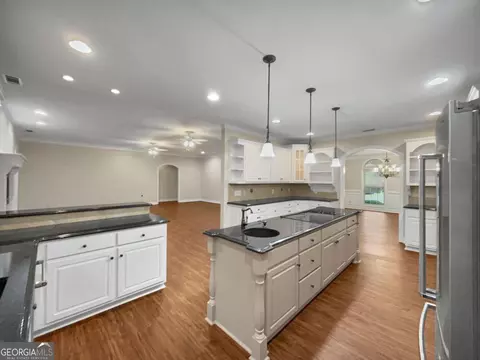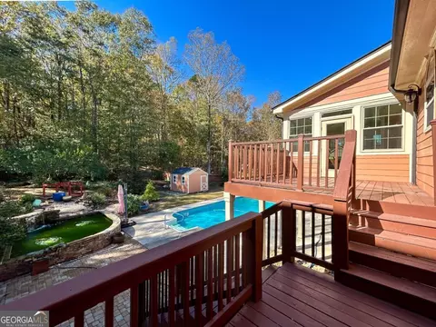 Timeless charm, sophisticated appointments and immense space are the hallmarks of this custom ranch in Jackson County's coveted Clarksboro community. This sought-after, single-level-living design was masterfully crafted with a formal living plan that boasts oversized rooms to ensure comfortable enjoyment. A entertainer's dream, these expansive living spaces are highlighted with key elements such as NEW durable luxury vinyl floors, custom built-ins, decorative light fixtures, 2in blinds package, 9ft ceilings, trims and moldings package, gas-log fireplace, custom closets and so much more. Upon approach, the notable features begin to come alive with the NEW roof, plus stone and shake accents perfectly staged with professional landscaping and sodded front yard. Eagerly welcomed through the stately foyer, you will find yourself pausing as you take in the view of the vast living and dining spaces. Freshly painted, the neutral palette provides the perfect canvas for any design and distinctive clean lines. Flanking the foyer is a grand dining room with arched entryways and study that can house your private library collection, all leading to the central gathering space, the massive great room. The home chefs dream, the expansive gourmet kitchen boasts functionality and style. No expense spared, this culinary space features 360' of custom cabinets plus glass, back-lit display cabinets, expansive granite countertops, raised breakfast bar, an oversized island, appliance package that includes a new stove top, newer refrigerator and dishwasher, and is complete with a spacious pantry with custom shelving system. Perfectly designed to keep your busy life organized, the rear foyer offers a "drop zone" by the garage door and oversized laundry room with storage cabinets just around the corner. Private access to the primary suite is also found off this wing of the home and is a true retreat. This sprawling bedroom features a private sitting room and an ensuite full bath packed with amenities such as; dual vanities, a tiled shower, private water closet, garden tub and multiple closets with custom shelving. Flanking the opposite side of the home are 2 accessory bedrooms and full bath. This home continues to impress with its full basement-offering a huge workshop with garage bay and second garage bay ideal for hobbyists or additional storage. The lower level expands with several multi-functional rooms providing a plethora of options. Wait--that's not all...The living spaces on the main expand to a light-filled sunroom that extends to an open-air deck overlooking a true backyard retreat. A glistening pool oasis framed by a patio surround, a customs stone koi pond stocked with 12 Koi fish, and lush professional landscaping create the ultimate setting for outdoor enjoyment. A terrace-level patio adds even more space for relaxing or entertaining, while a separate storage building provides practical convenience. With its thoughtful craftsmanship, abundant upgrades, and unmatched outdoor amenities, this Clarksboro residence captures the essence of refined, easy living-just minutes from Hwy. 129, Athens, and the Oak Grove shopping center.