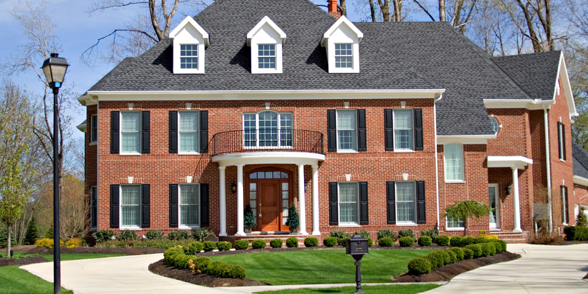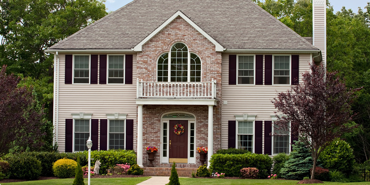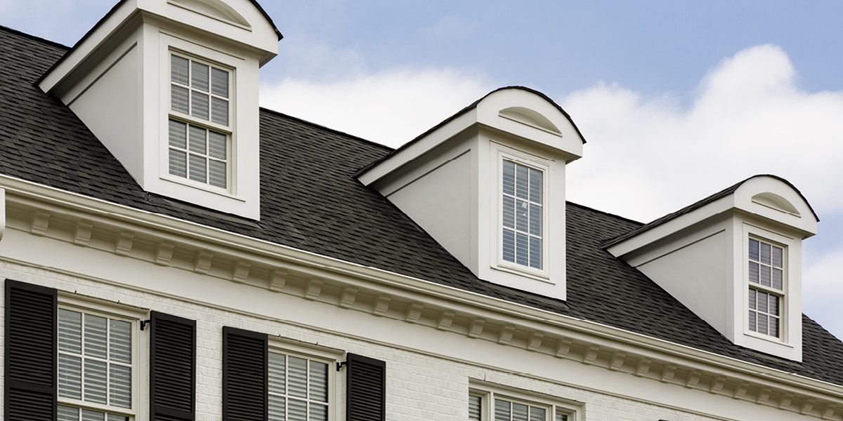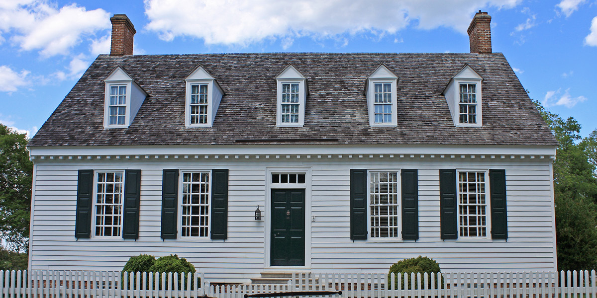 Early Colonial-style homes in New England were designed with a steeply pitched roof to shed heavy loads of snow. This characteristic survives today and is one of the most recognizable features of Colonial-style architecture. While gabled roofs provide more attic space and better ventilation, they’re susceptible to damage from high winds, therefore they’re not commonly found in the South or in coastal regions. Colonial-style homes in areas prone to high winds or hurricanes typically have a hip roof, which slopes on all four sides and is more durable.