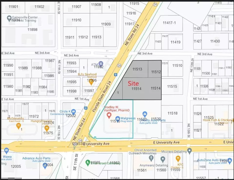 | Directions | FROM THE INTERSECTION OF WALDO RD AND UNIVERSITY AVE GO NORTH 100 YARDS. PROPERTY TO THE NORTH OF WALGREENS. |