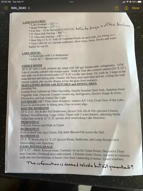 | Lot Description | Level, Not In Subdivision, Lake Front |
