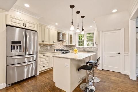 | Kitchen | Flooring - Hardwood, Dining Area, Countertops - Stone/Granite/Solid, Kitchen Island, Breakfast Bar / Nook, Cabinets - Upgraded, Exterior Access, Open Floorplan, Recessed Lighting, Remodeled, Stainless Steel Appliances, Lighting - Pendant |