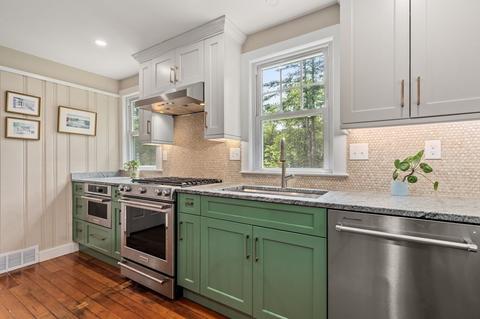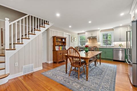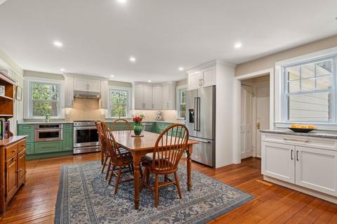 | Kitchen | Flooring - Hardwood, Dining Area, Countertops - Stone/Granite/Solid, Countertops - Upgraded, Country Kitchen, Open Floorplan, Recessed Lighting, Remodeled, Stainless Steel Appliances, Pot Filler Faucet, Beadboard |