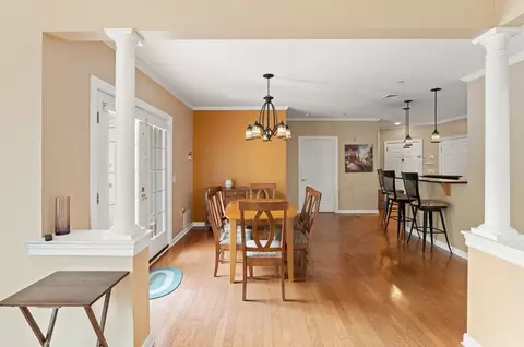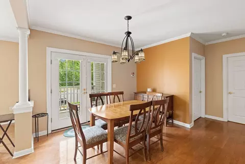 | Dining Room | First, Flooring - Wood, Balcony / Deck, Open Floorplan, Crown Molding |