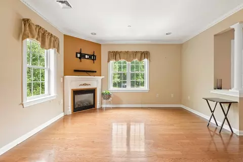 | Living Room | Flooring - Wood, Open Floorplan, Recessed Lighting, Crown Molding |