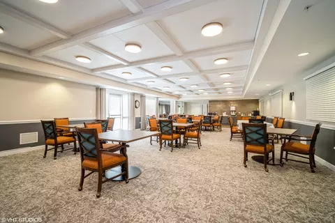 Seller will provide credit of $17,397 which can BE APPLIED TOWARDS MONTHLY ASSESSMENTS at closing. Buyer must pay entrance fee of $302,263.The Lodge of Northbrook is a 55+ community designed for active, independent seniors. The Honey Locust floor plan offers 1,933 square feet of living space, featuring 2 bedrooms plus a den. This spacious first floor unit simplifies downsizing. Upon entering, you'll notice the open floor plan. The beautiful kitchen is equipped with stainless steel appliances, granite counters, a custom backsplash, light fixtures, and space for a kitchen table. The layout seamlessly connects the kitchen to the living and dining areas, providing ample space for a full living room and dining room set-ideal for hosting gatherings. The den offers versatility as a home office, guest bedroom, or space for a live-in caretaker. A full bath is located just off the hallway for use by guests or services the 2 extra bedrooms. The expansive primary bedroom features a large walk-in closet and an ensuite bath with a handicapped-accessible shower and double sink vanity. The spacious second bedroom, located on the opposite side for added privacy, also includes a walk-in closet and ensuite bath with an accessible shower. For convenience, the unit includes a laundry room with a full-size washer and dryer. Abundant storage is available, including large walk-in closets, a walk-in pantry, linen storage, and a coat closet. One parking spot in the heated garage is included, along with an extra storage locker on the same floor. The Lodge of Northbrook offers daily activities such as exercise classes, movies, bingo, and special speakers. Amenities include dining options, a wellness center, woodworking workshop, artist studio, and community rooms for card groups. A complimentary continental breakfast is served Monday through Friday in the first-floor dining room. Transportation is available within an 8-mile radius, Monday through Friday from 8:00 AM to 4:30 PM. The monthly assessment covers everything, including property taxes, common insurance, all utilities, internet, basic cable, and both exterior and interior maintenance. Income qualification is required for residency. The Lodge is conveniently located near shopping, expressways, and restaurants, with Ravinia and the Chicago Botanic Gardens just a short drive away. Northbrook residents enjoy access to the library, senior center, golf, tennis, and pickleball, along with various park district activities. For more information, please visit the Lodge of Northbrook website. A standard flooring and paint allowance will be provided to the buyer for flooring and paint of their choice.