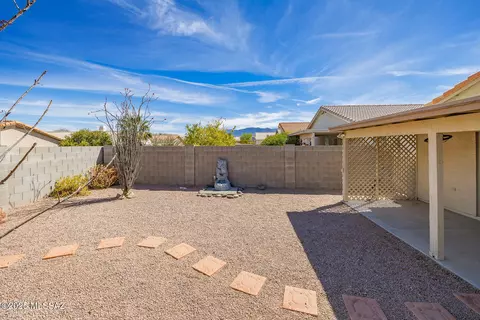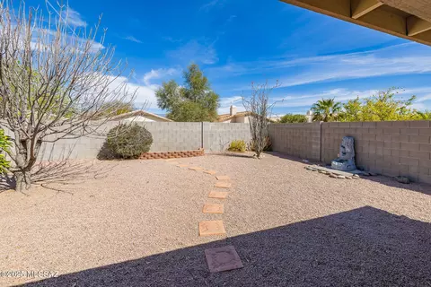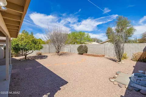 | Landscape: Rear | Decorative Gravel, Desert Plantings, Low Care, Shrubs, Sprinkler/Drip, Trees |